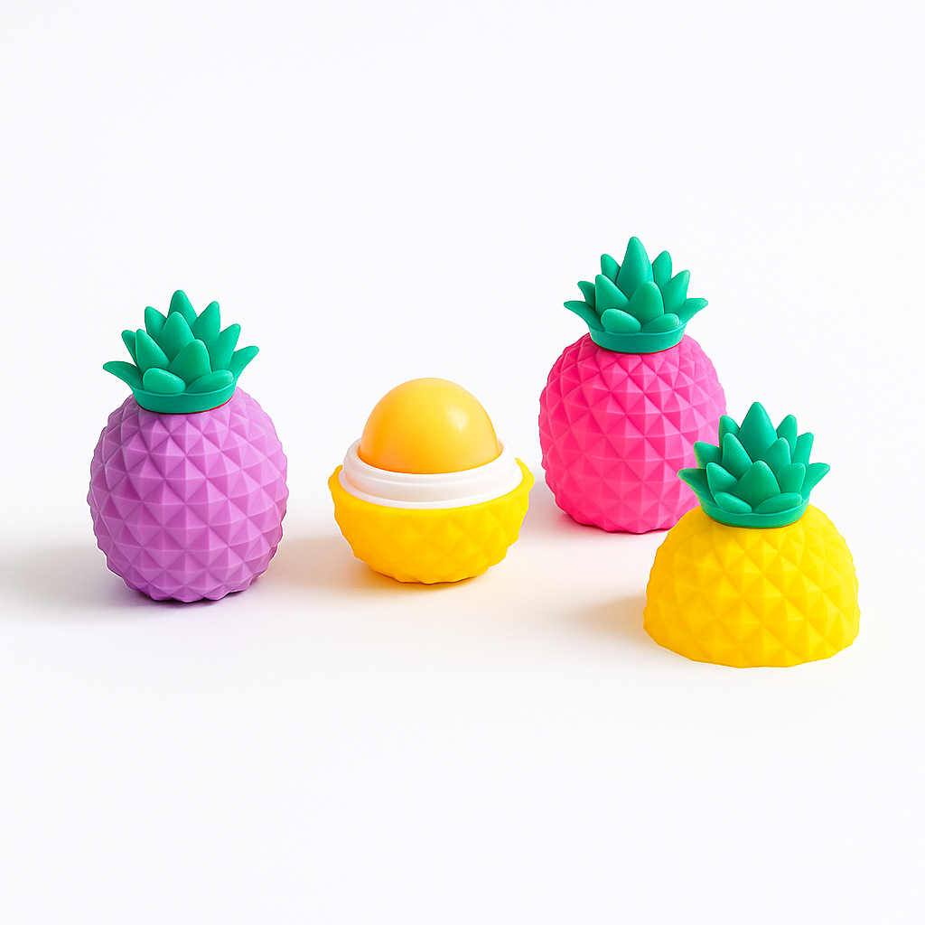 Descripción: Juego de bálsamos con forma de piña y frutas. Hidratación divertida y aromas tropicales.